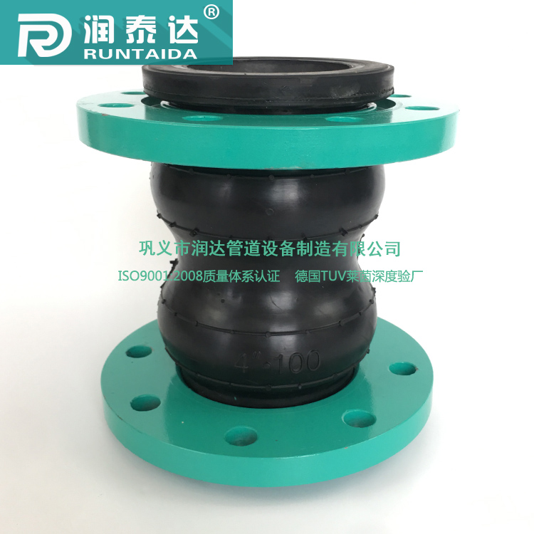 通過加長橡膠接頭支撐模具,來做到橡膠 接頭的加(jiā)長,但是在(zài)製造過程中,由於橡膠膨脹節的結構影響,會造成雙球體(tǐ)可曲(qǔ)撓橡膠接頭(tóu)在製造過程中,相鄰(lín)的兩個橡膠膨脹節之(zhī)間的膠量不足而導致橡膠膨脹節(jiē)直接壁厚較薄,造成承壓能力的下降,所以在雙球體可曲撓橡膠(jiāo)接頭橡膠膨脹節部位,加裝金屬加強環,可(kě)以有效的避免橡膠膨脹節(jiē)在高壓(yā)環境下的破裂,同時也解(jiě)決了雙球體橡膠接頭(tóu)承壓能(néng)力較低的缺陷 雙球體橡膠接頭連接 一般有絲扣(kòu)連接、法蘭連(lián)接和卡箍連接等方式。它的球體是由內膠層、增強層有多層刮膠錦綸(lún)簾子布、外膠層複(fù)合的橡膠管組成。根據介質(zhì)的不同所采用的橡膠材質(zhì)也是不同的,其中有天(tiān)然膠、丁苯膠、丁(dīng)基膠、丁腈膠、三元乙(yǐ)丙膠、氯丁膠、矽橡膠(jiāo)、氟橡膠等等多種材質。分別具有耐熱、耐(nài)酸、堿、耐腐蝕、耐磨、耐油等功能。